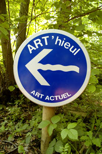 Dans le bois d'Arthieul, Pierre Marcel, l'un des cinq artistes invit�s en 2005, pr�sente un travail de d�tournement de 70 panneaux de signalisation routi�re.