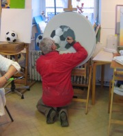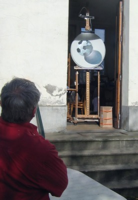 passion, la magie... (le chapeau haut de forme) Sont r�unis ici pas mal de difficult�s, (plis de tissus, perspectives, effets de mati�res, sable etc...) et Jean Pierre s'en sort bien, aid� d'une d�termination d'acier tremp�, et d'une humeur joviale qui fait si grand bien � notre s�ance du jeudi soir ! Vraiment bien pour quelqu'un dont c'est ici ses premiers pas en peinture, n'est ce pas ?