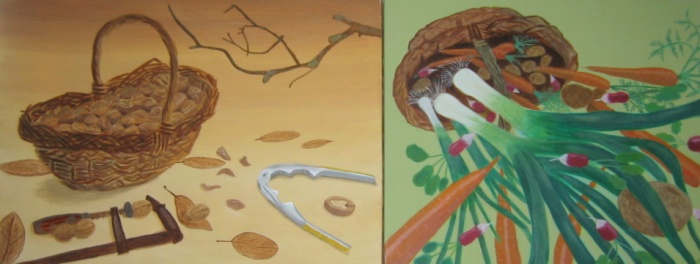 Lle panier est réutilisé pour la seconde peinture, une corne d'abondance avec des légumes. Ceci afin de participer à la première fête des fruits et légumes de Magny en Vexin.