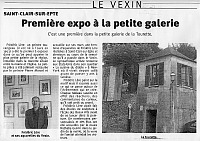 Frédéric Lère un peintre tourangeau (il est né à Tours en 1953) a été le premier à exposer dans ce qu’ont peut appeler la plus petite galerie de la région, installée dans la tourette située entre la mairie et l’église. La petite pièce a été joliment restaurée par le peintre Pierre Marcel et accueille sur ses murs une trentaine d’aquarelles de Frédéric Lère réalisées à Saint Clair sur Epte et alentours au cours de la semaine qu’il a passé dans le Vexin. Le sympathique artiste retourne aux Etats-Unis dans son quartier « La cuisine du diable » à New-York où il vivait depuis 1986 avant de passer 3 ans à Genève ;