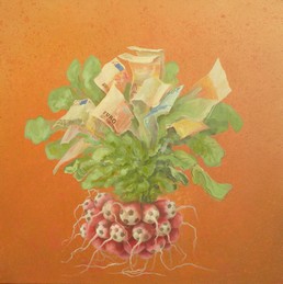 La série Oseilles, radis, en interventions d'art sur notre actualité financière locale, communale, régionale, nationale, internationale .... depuis 2008, je constatais que les convresations officieles devenaient trés interressées par le fonctionnement de notre économie. |