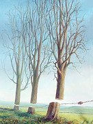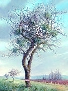 Noter l'installation spartiate (bigre bigre, le vent de mars !) et l'incroyable prolifération des boules de gui et, au sol,  la non moins remarquable et symétrique prolifération des taupes. Là peut être une idée pour une nouvelle peinture?