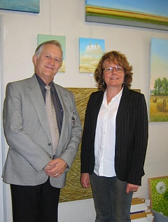 Monsieur Jean-Pierre Mantel, président de l'office de Tourisme d'Auvers et donc "l'employeur bénévole" d''Hélène (à gauche) et de Christelle (à droite) |