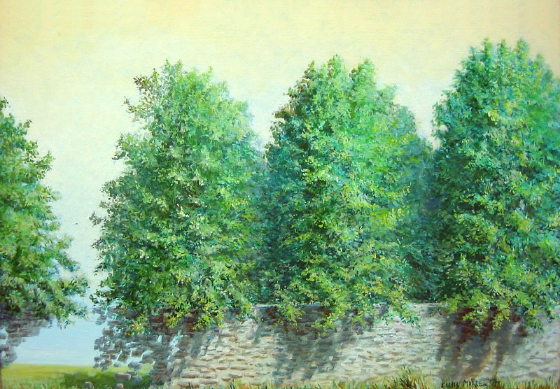 In Guerny, the village next to mine, very tall "tilleuls" grow above a wall. I painted the illustration of the say about the shadow: here the stones from the wall are flaotting in the shape of the shadoow casted by the tree